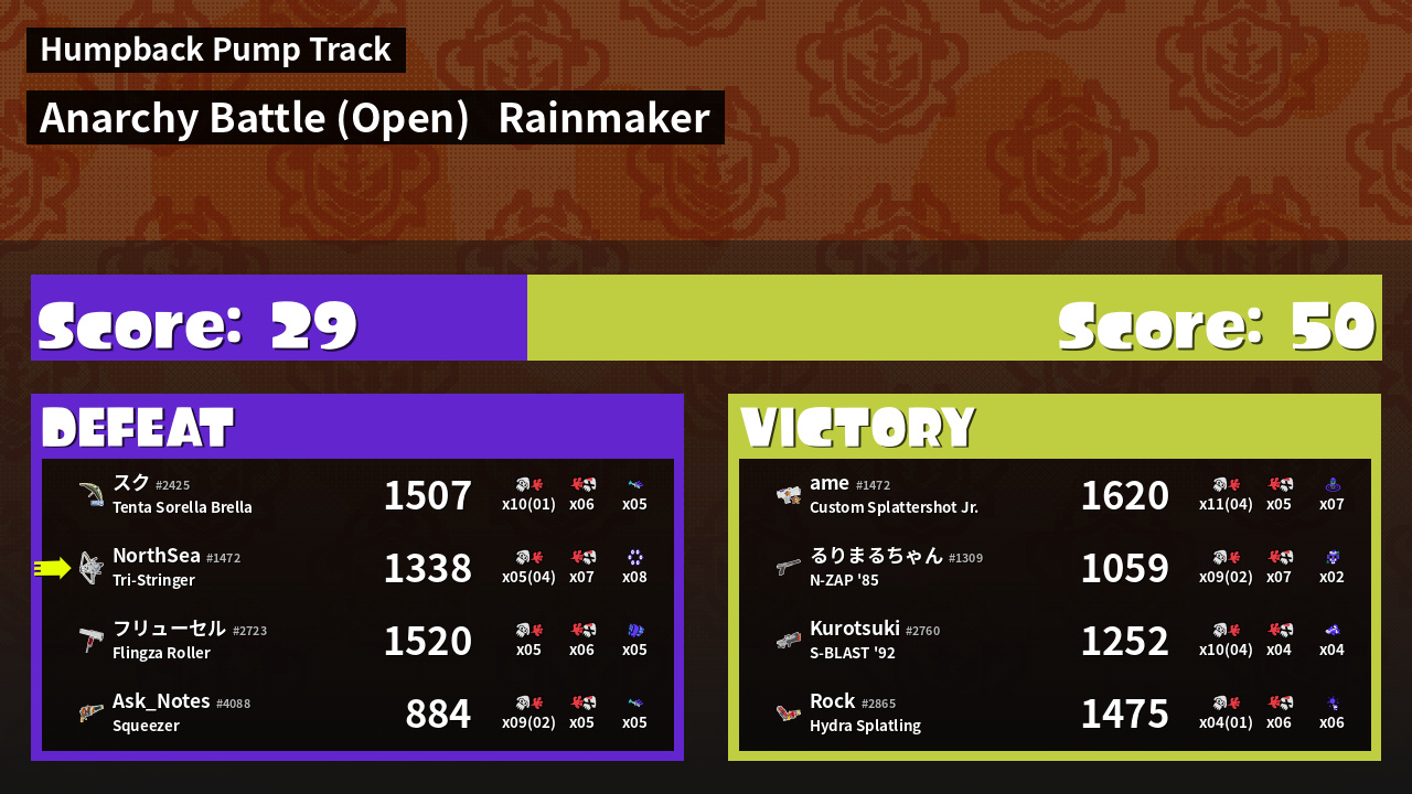 | Mode | Rainmaker - Anarchy Battle (Open) | ||