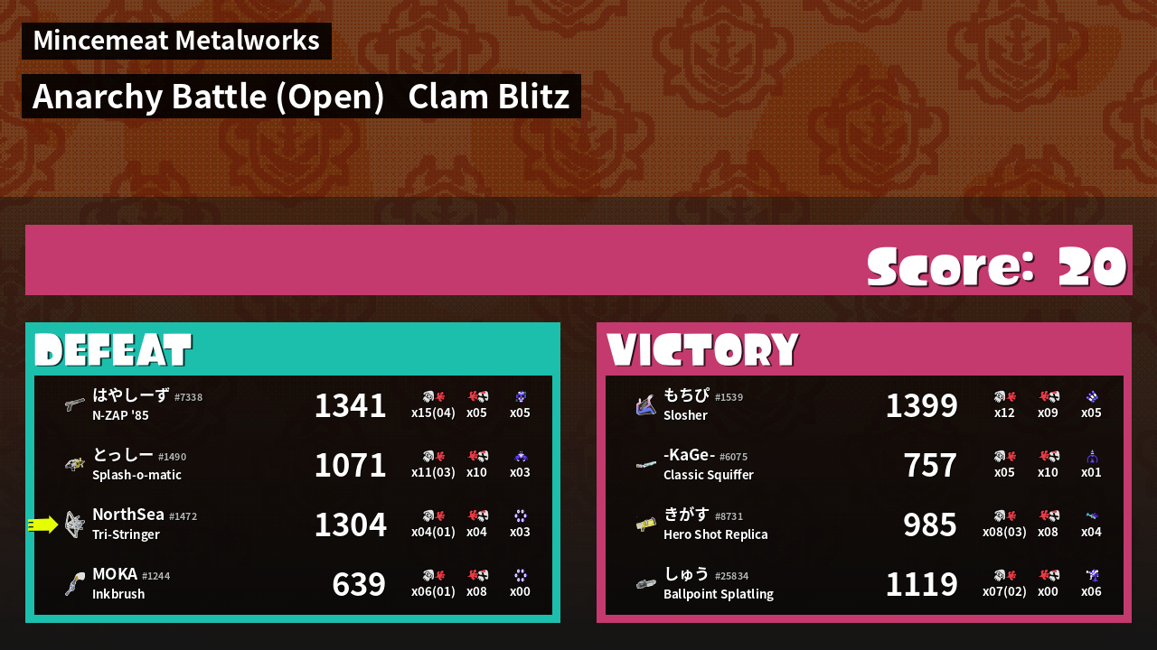 | Mode | Clam Blitz - Anarchy Battle (Open) | ||