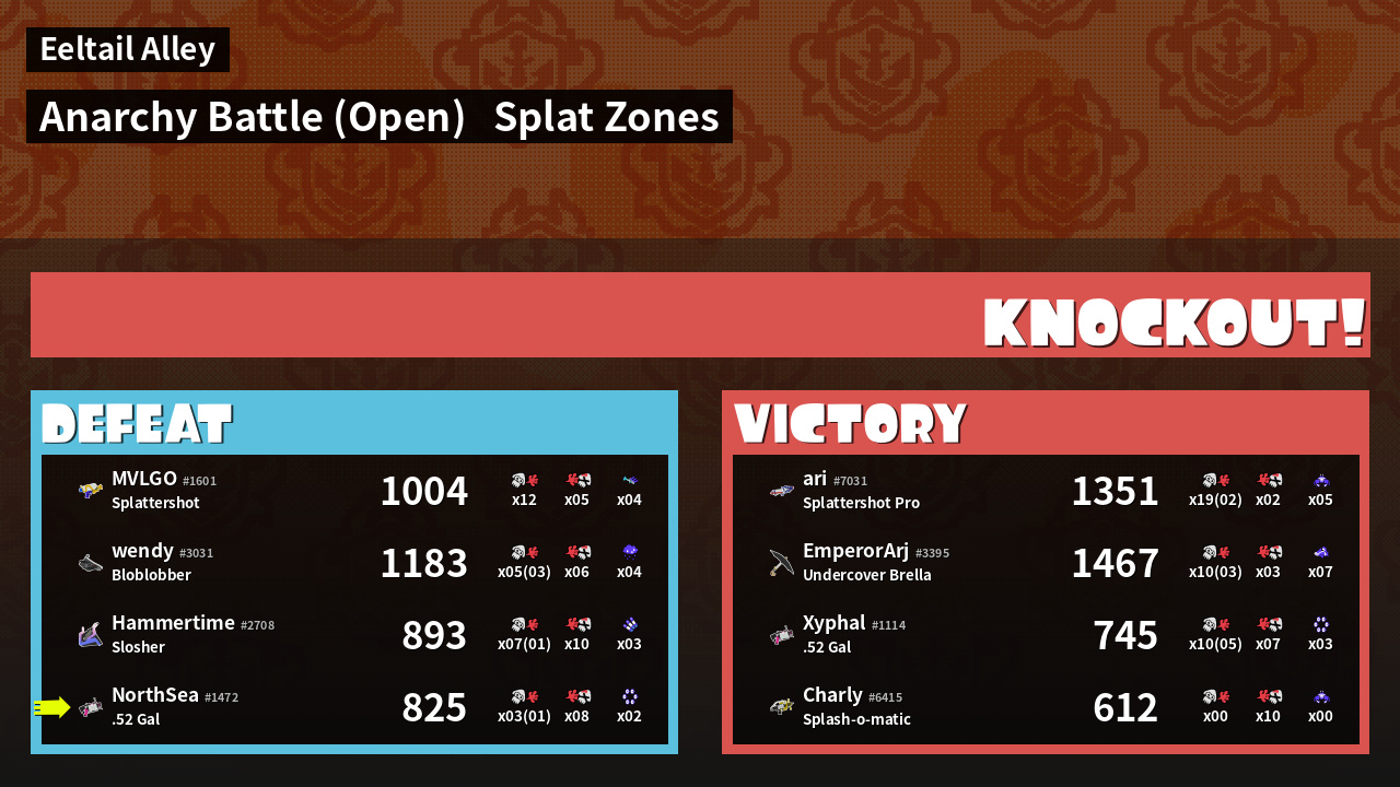 | Mode | Splat Zones - Anarchy Battle (Open) | ||