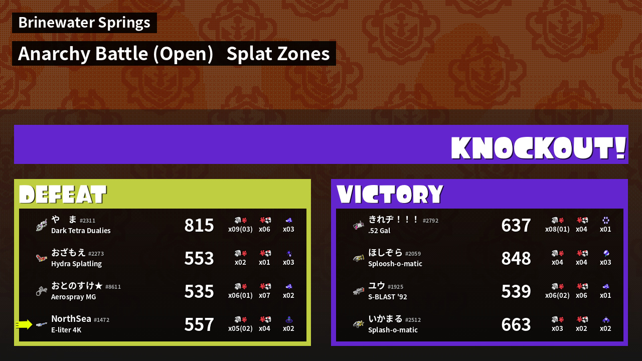 | Mode | Splat Zones - Anarchy Battle (Open) | ||