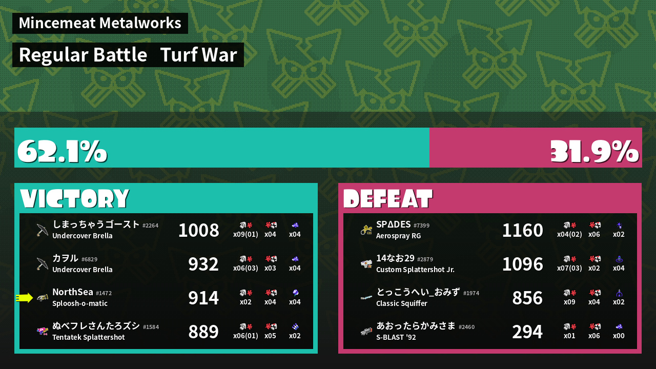 | Mode | Turf War - Regular Battle | ||