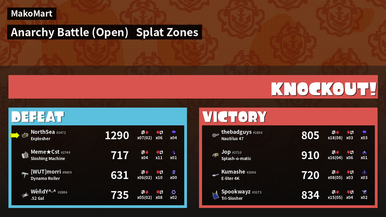 | Mode | Splat Zones - Anarchy Battle (Open) | ||