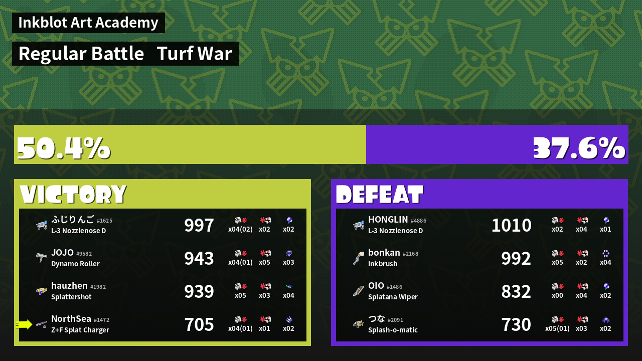 | Mode | Turf War - Regular Battle | ||