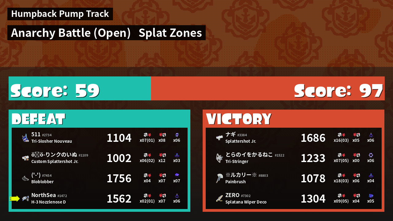| Mode | Splat Zones - Anarchy Battle (Open) | ||