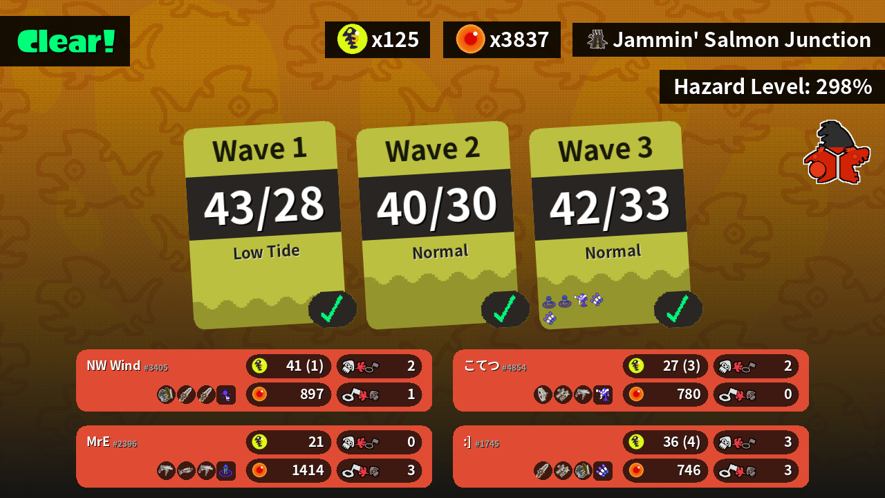 | Weapons | Grizzco Slosher Grizzco Splatana Grizzco Splatana | Grizzco Splatana Grizzco Dualies Grizzco Slosher | Grizzco Stringer Grizzco Dualies Grizzco Roller | Grizzco Roller Grizzco Charger Grizzco Roller |