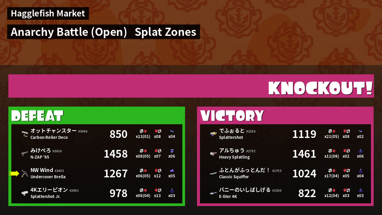 | Mode | Splat Zones - Anarchy Battle (Open) | ||