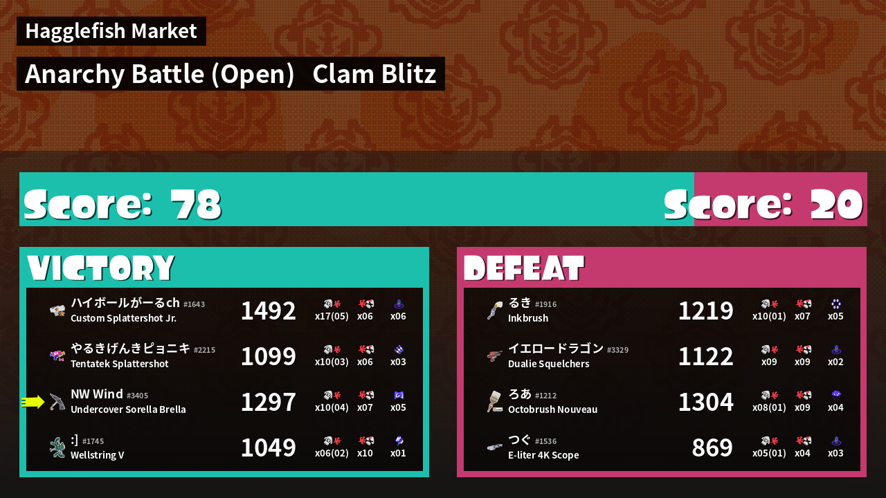 | Mode | Clam Blitz - Anarchy Battle (Open) | ||