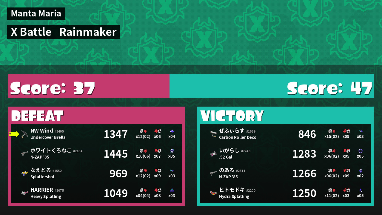 | Mode | Rainmaker - X Battle | ||