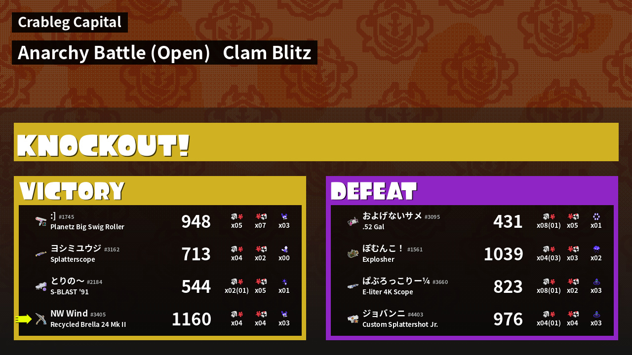 | Mode | Clam Blitz - Anarchy Battle (Open) | ||