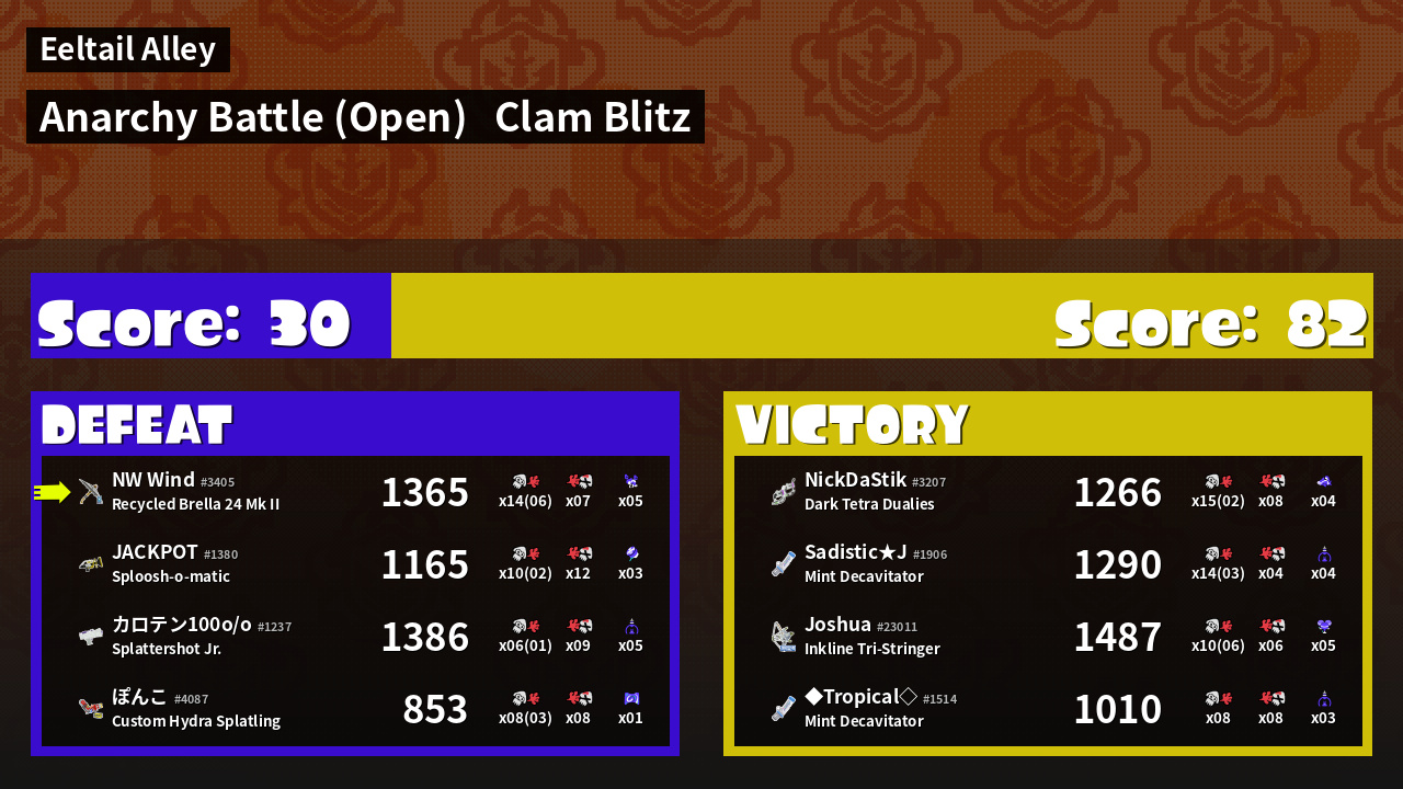 | Mode | Clam Blitz - Anarchy Battle (Open) | ||
