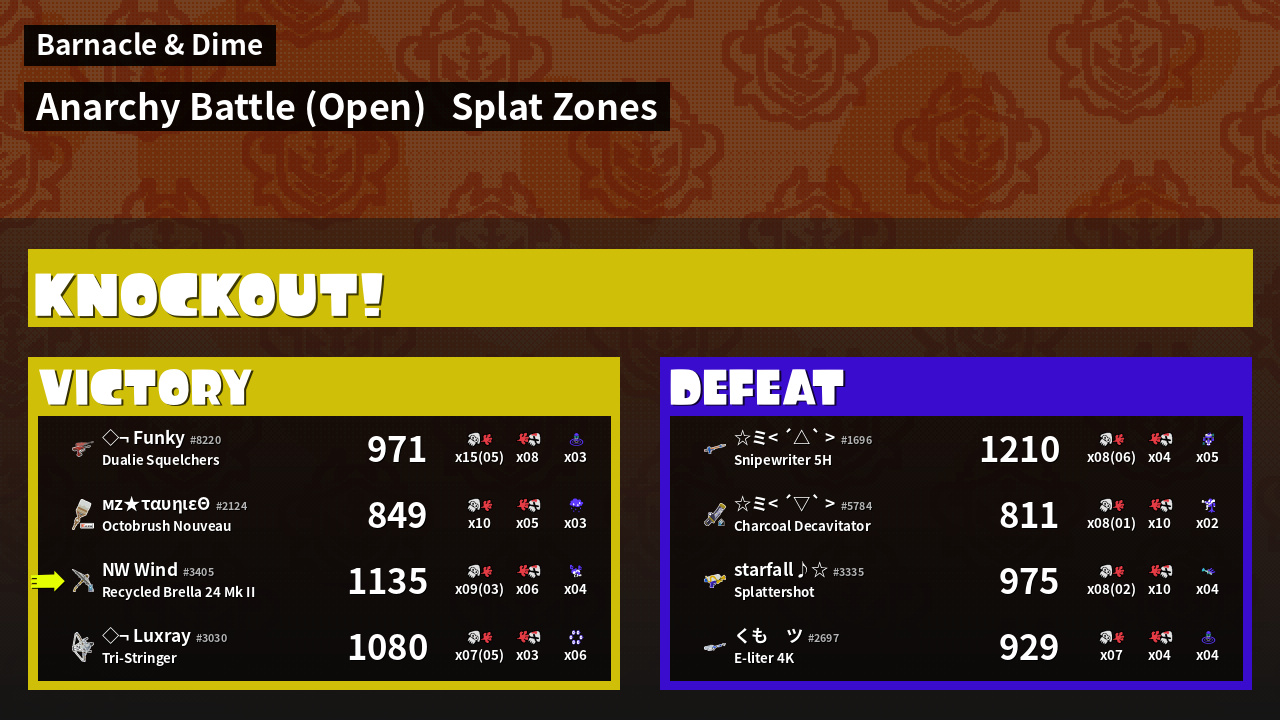 | Mode | Splat Zones - Anarchy Battle (Open) | ||