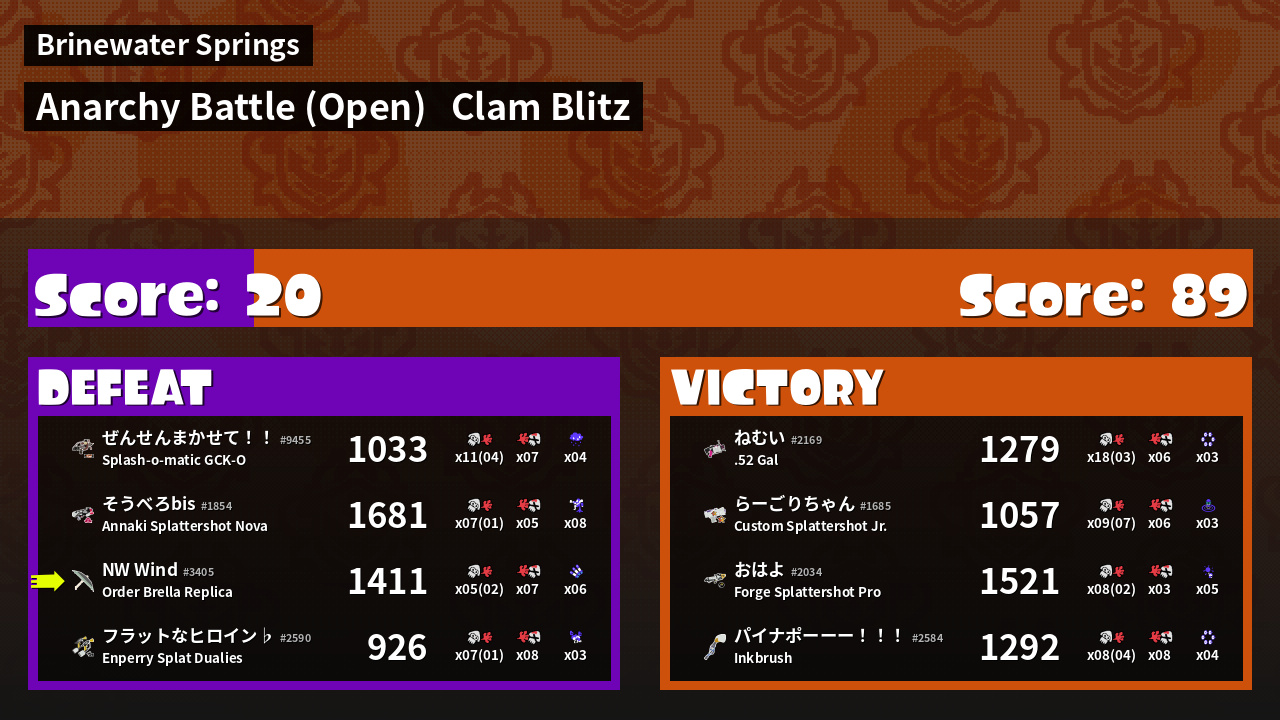 | Mode | Clam Blitz - Anarchy Battle (Open) | ||
