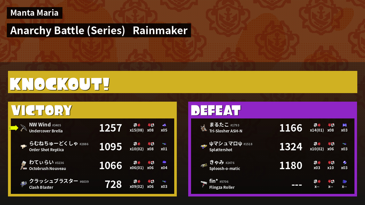| Mode | Rainmaker - Anarchy Battle (Series) | ||