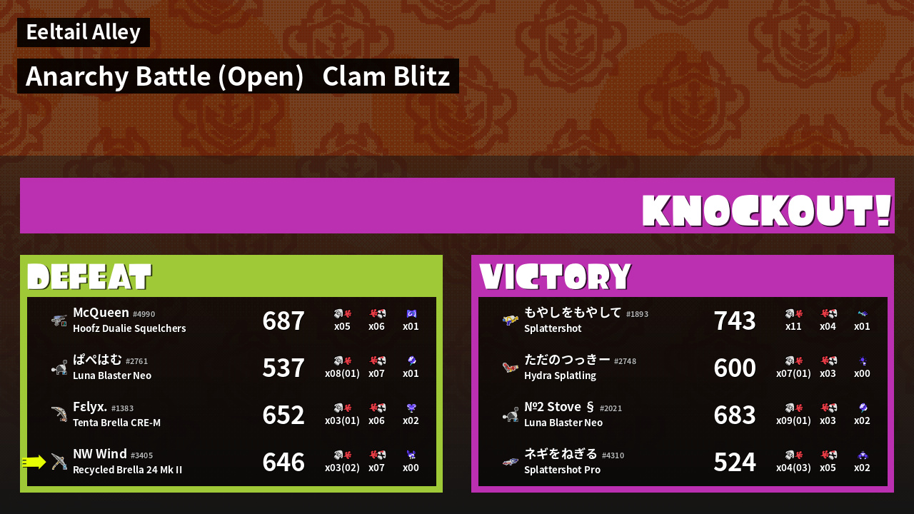 | Mode | Clam Blitz - Anarchy Battle (Open) | ||