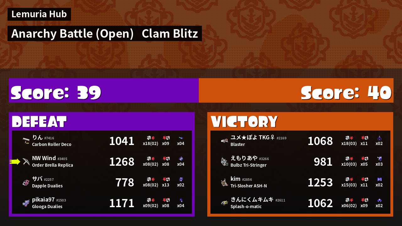 | Mode | Clam Blitz - Anarchy Battle (Open) | ||