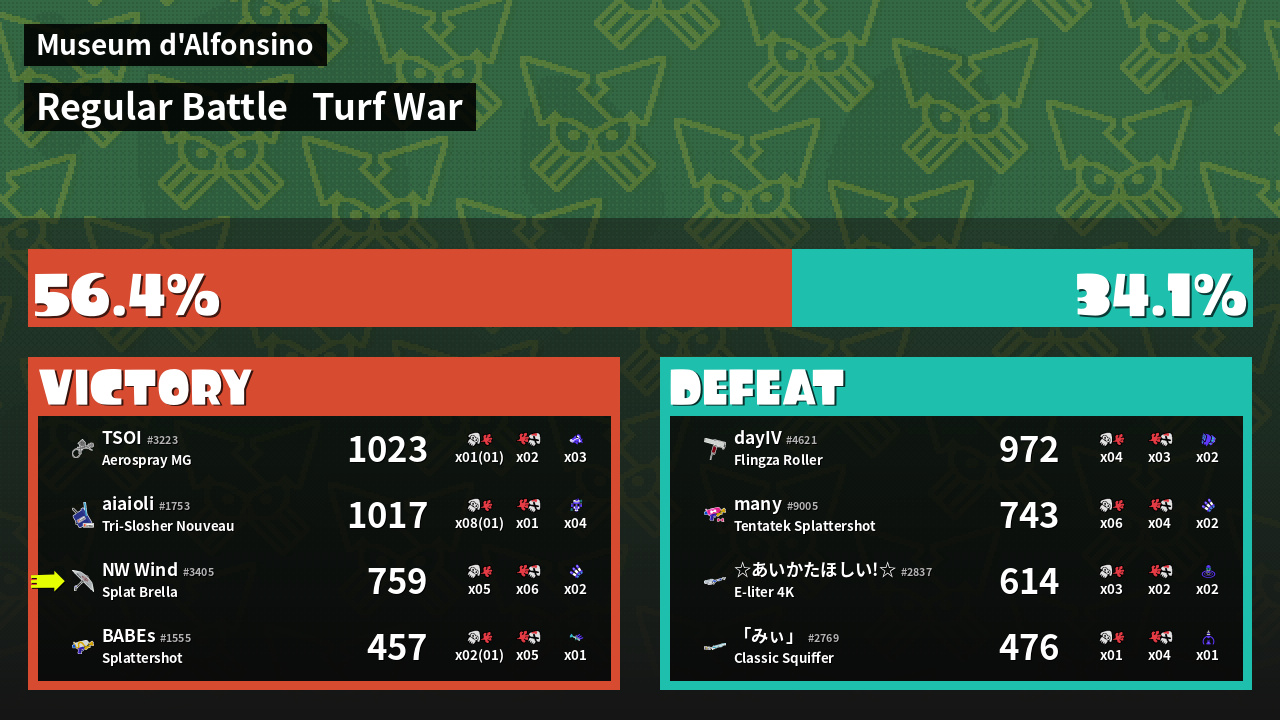 | Mode | Turf War - Regular Battle | ||