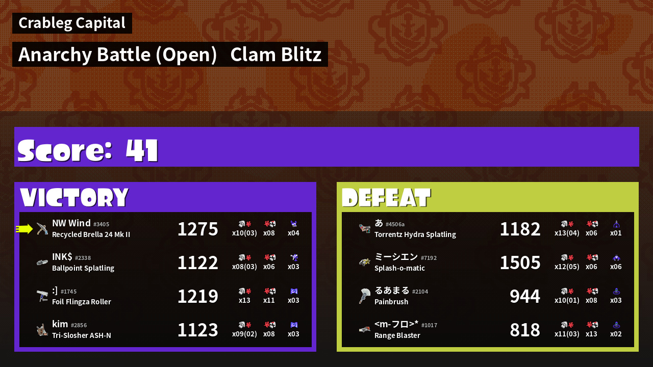 | Mode | Clam Blitz - Anarchy Battle (Open) | ||