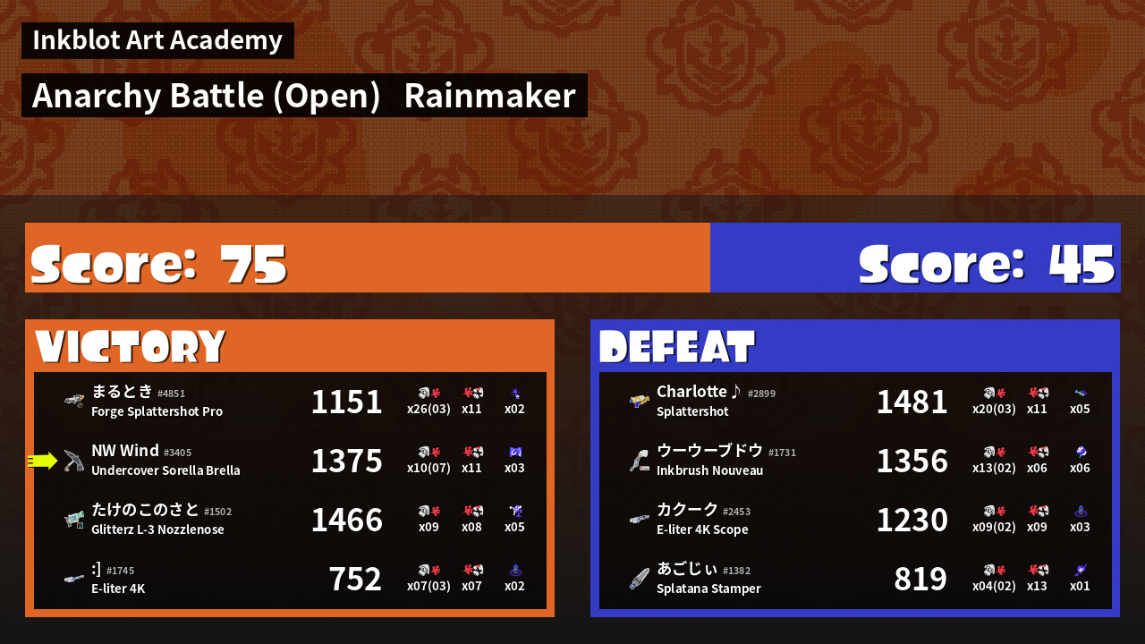 | Mode | Rainmaker - Anarchy Battle (Open) | ||