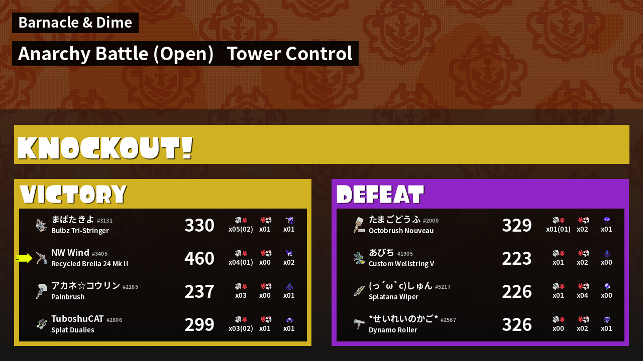 | Mode | Tower Control - Anarchy Battle (Open) | ||