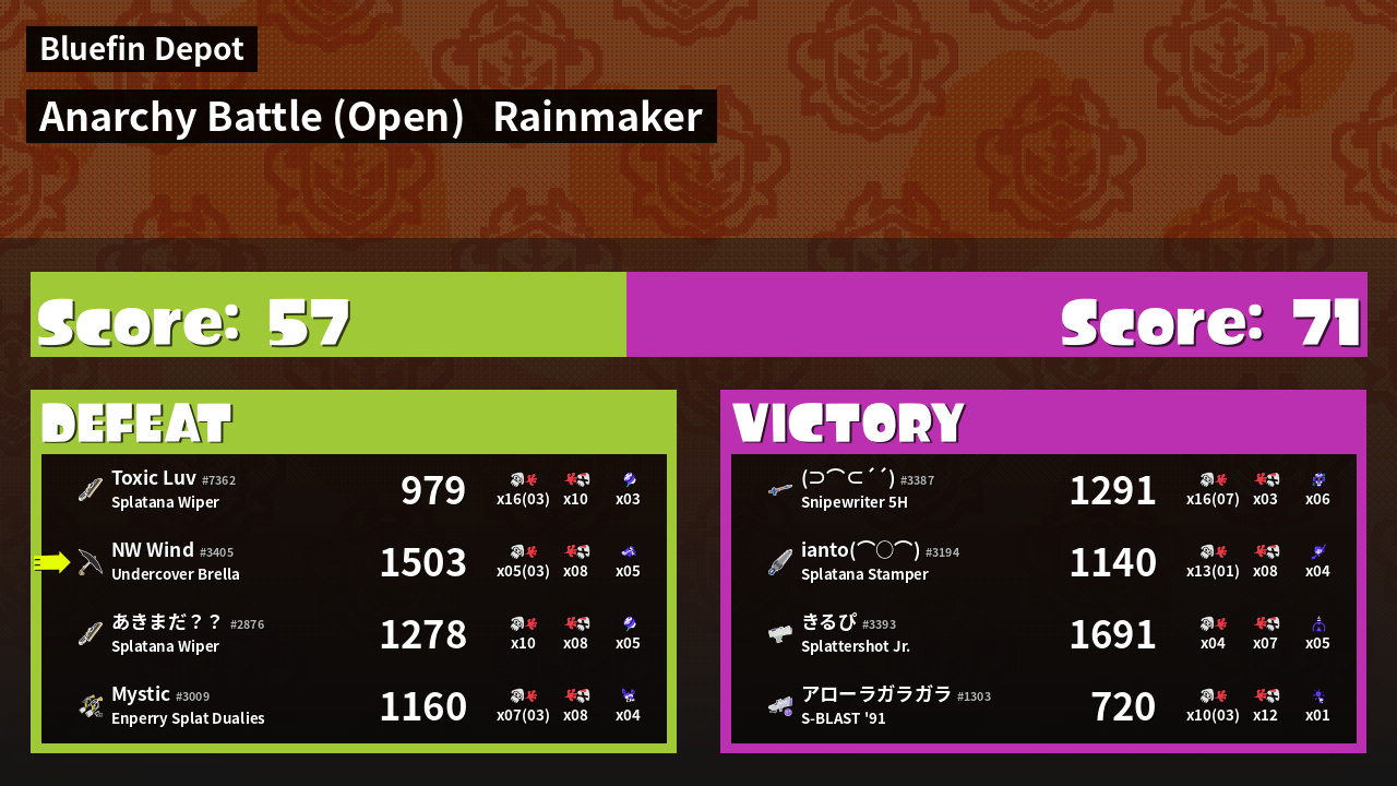 Name | Weapon | Inked | ![]() |