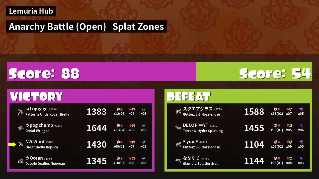 | Mode | Splat Zones - Anarchy Battle (Open) | ||
