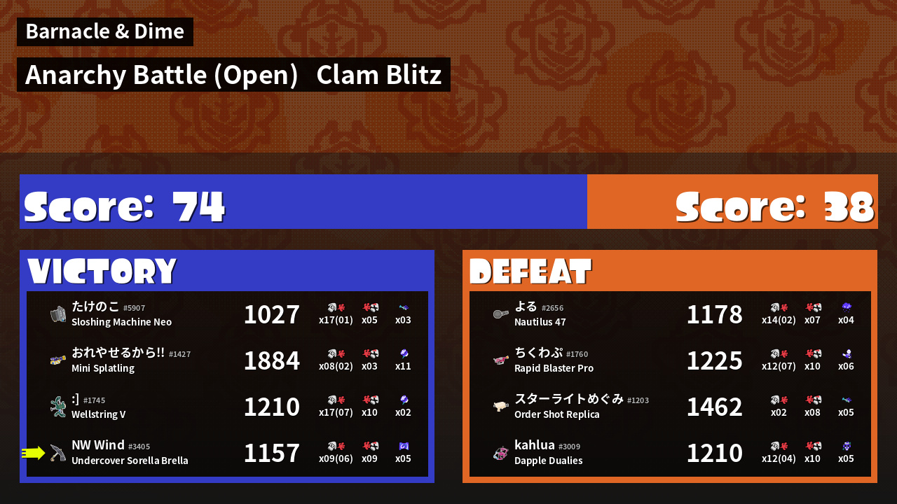 | Mode | Clam Blitz - Anarchy Battle (Open) | ||