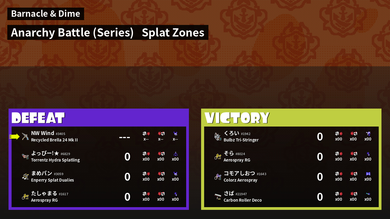 | Mode | Splat Zones - Anarchy Battle (Series) | ||