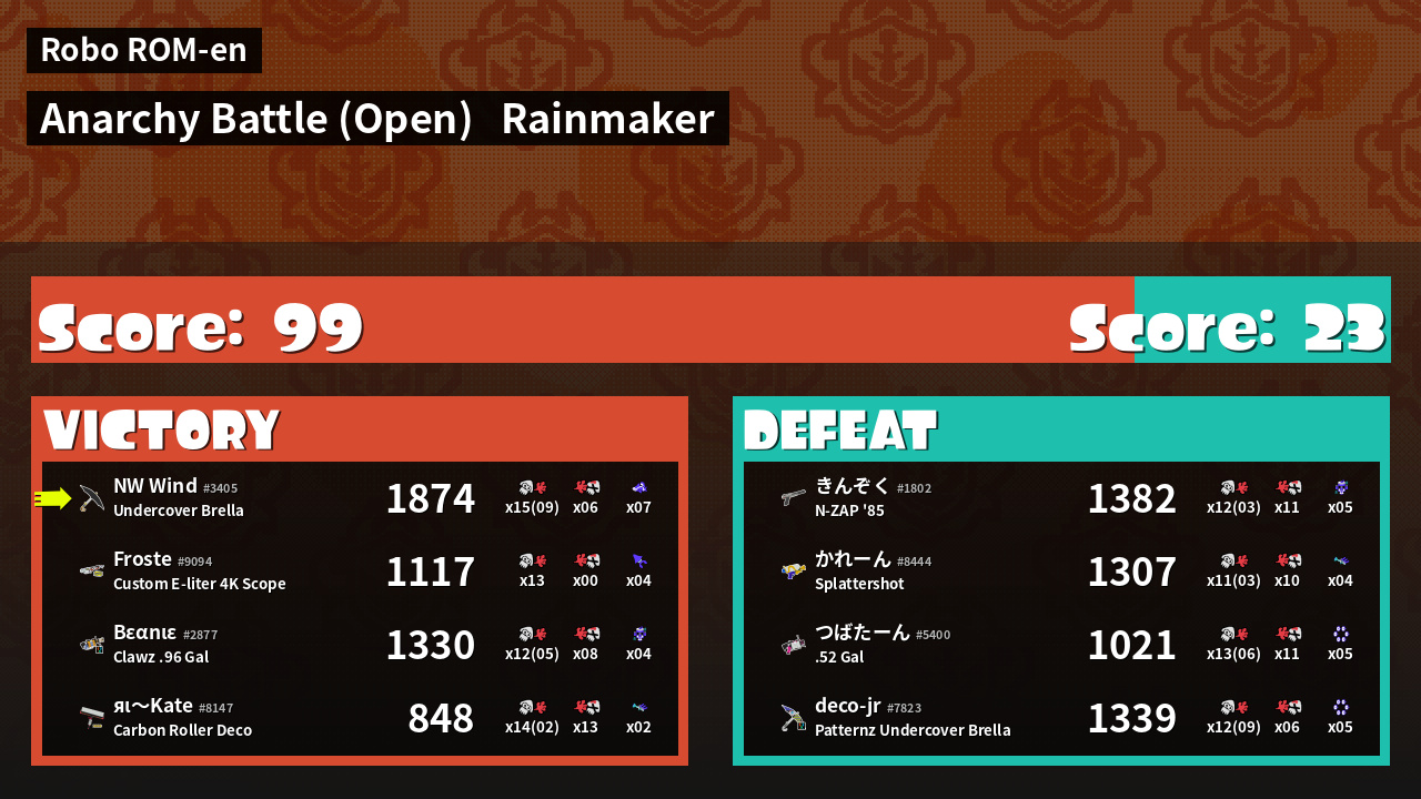 Kills / Deaths | 6 + 9 / 6 = Kill Ratio: 1.00 | ||