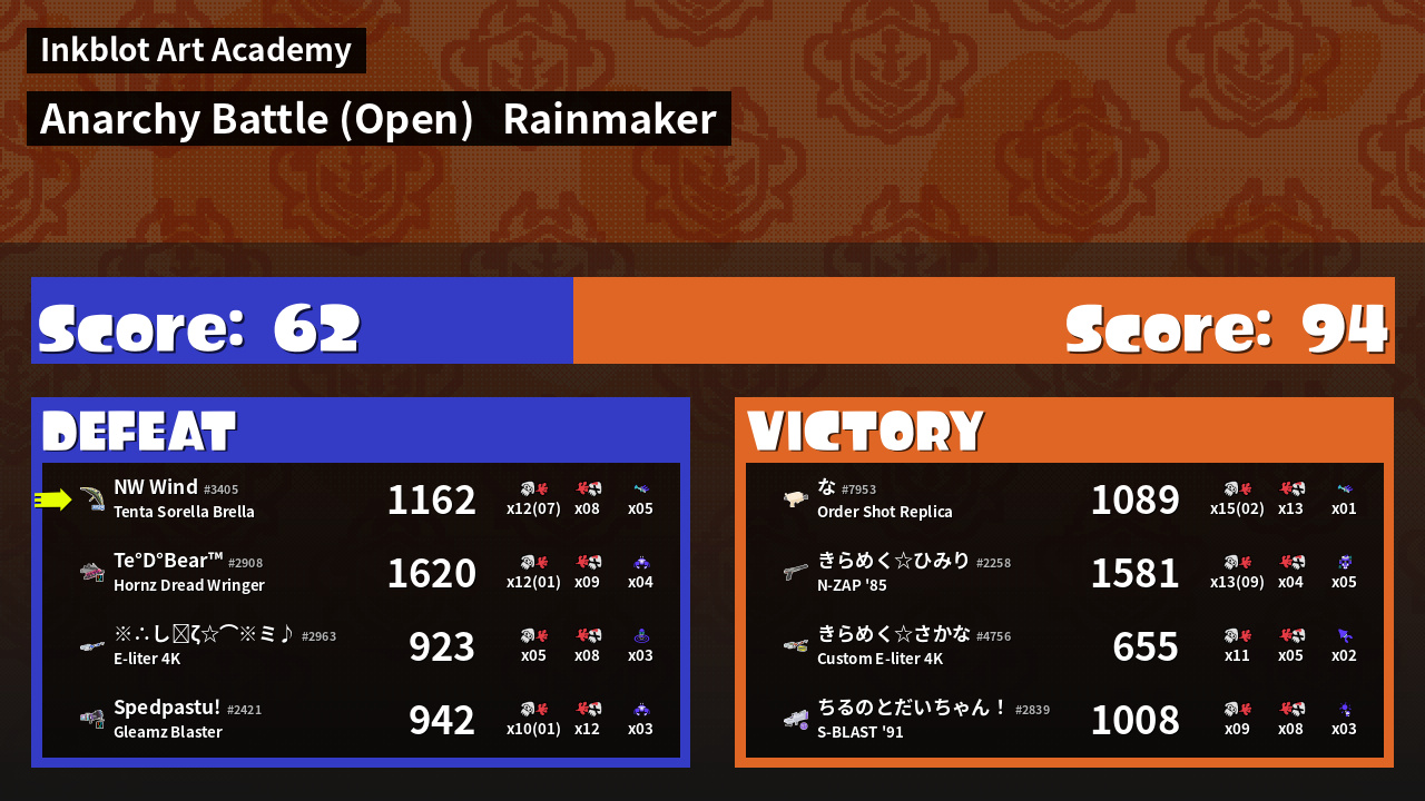 | Mode | Rainmaker - Anarchy Battle (Open) | ||