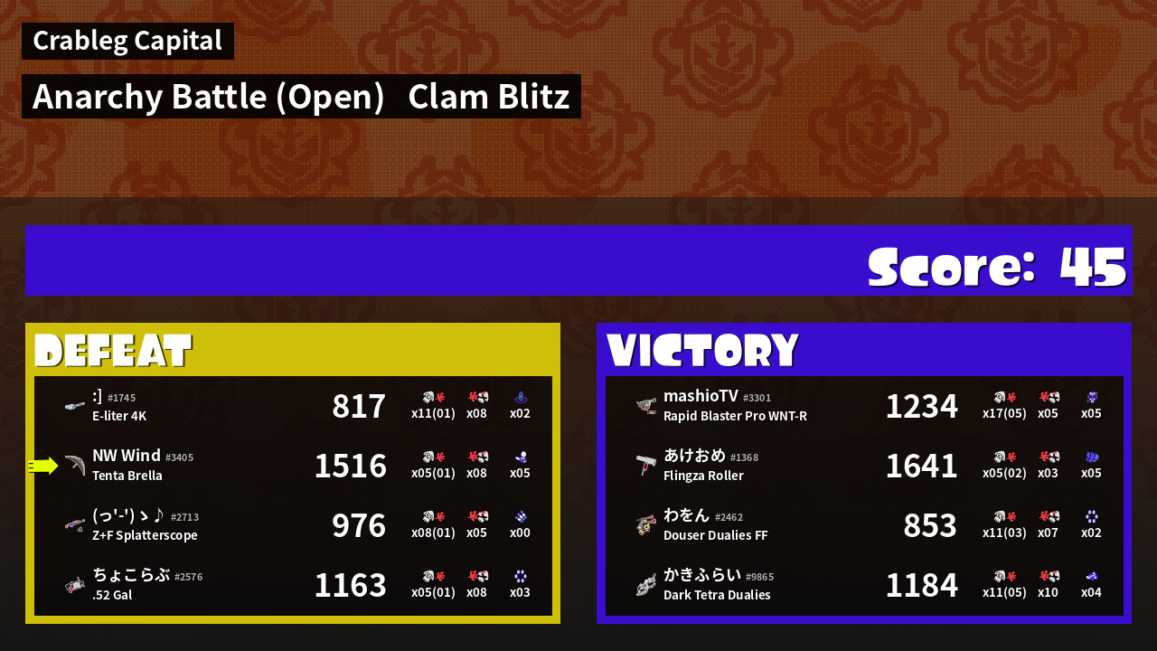| Mode | Clam Blitz - Anarchy Battle (Open) | ||