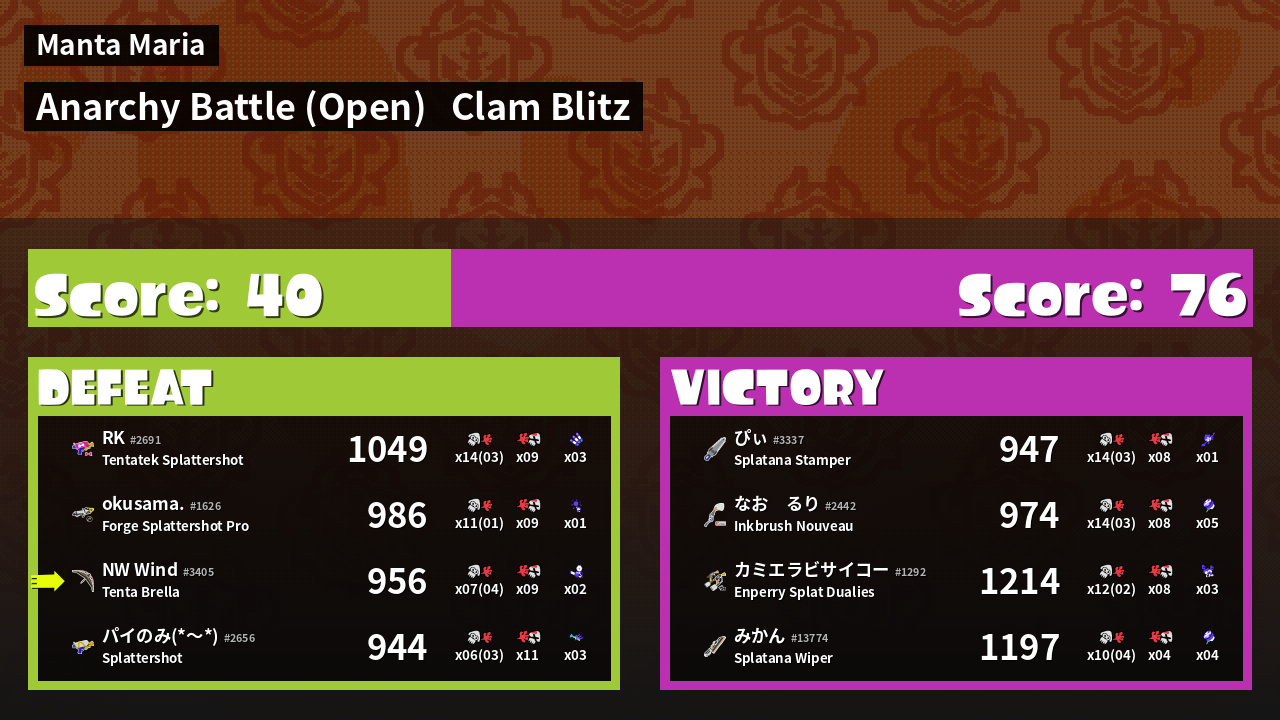 | Mode | Clam Blitz - Anarchy Battle (Open) | ||