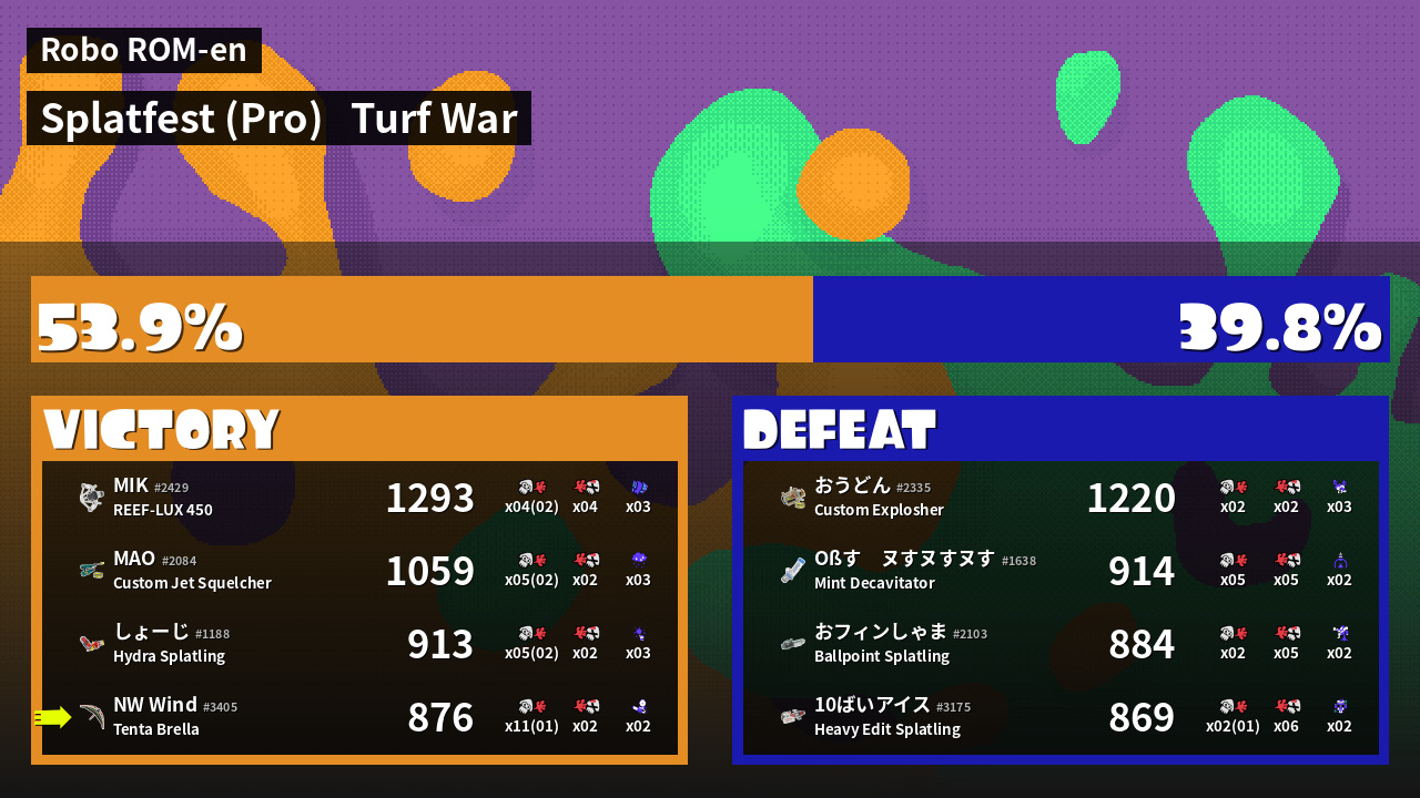 | Mode | Turf War - Splatfest (Pro) | ||