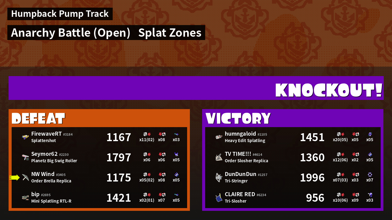 | Mode | Splat Zones - Anarchy Battle (Open) | ||