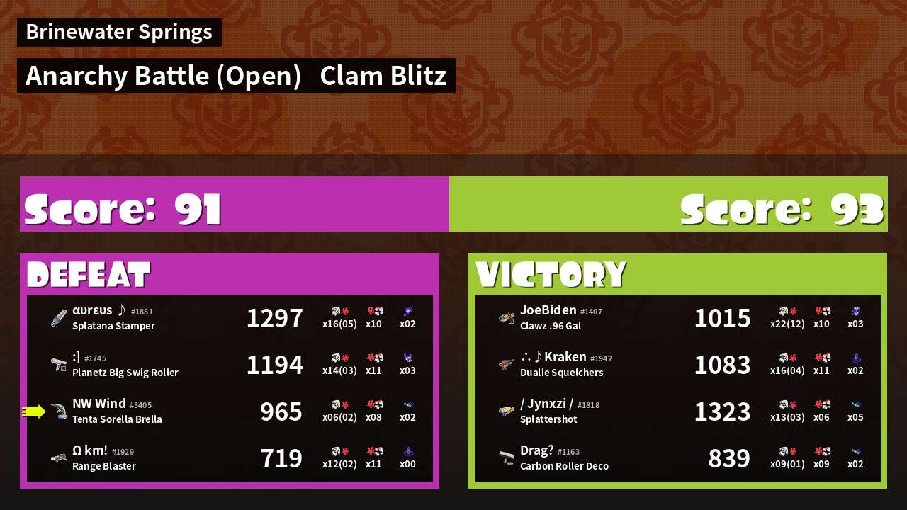 | Mode | Clam Blitz - Anarchy Battle (Open) | ||
