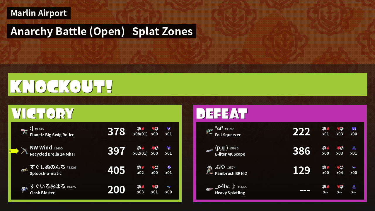 | Mode | Splat Zones - Anarchy Battle (Open) | ||