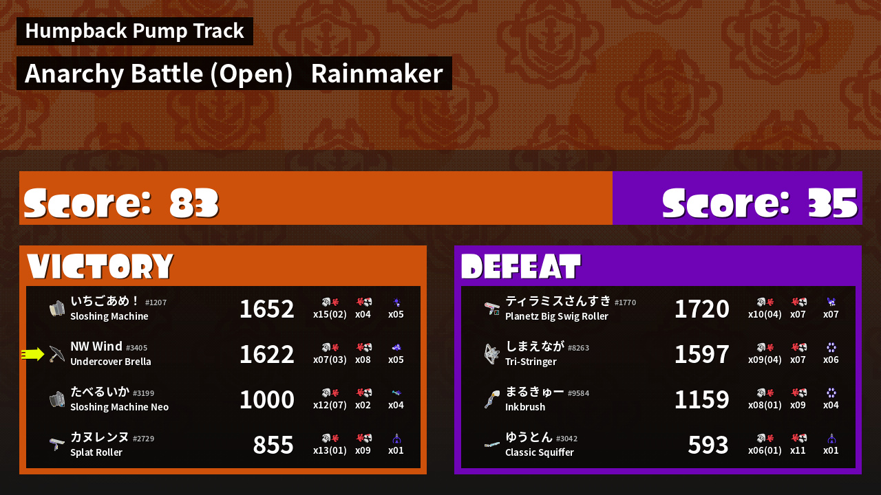| Mode | Rainmaker - Anarchy Battle (Open) | ||
