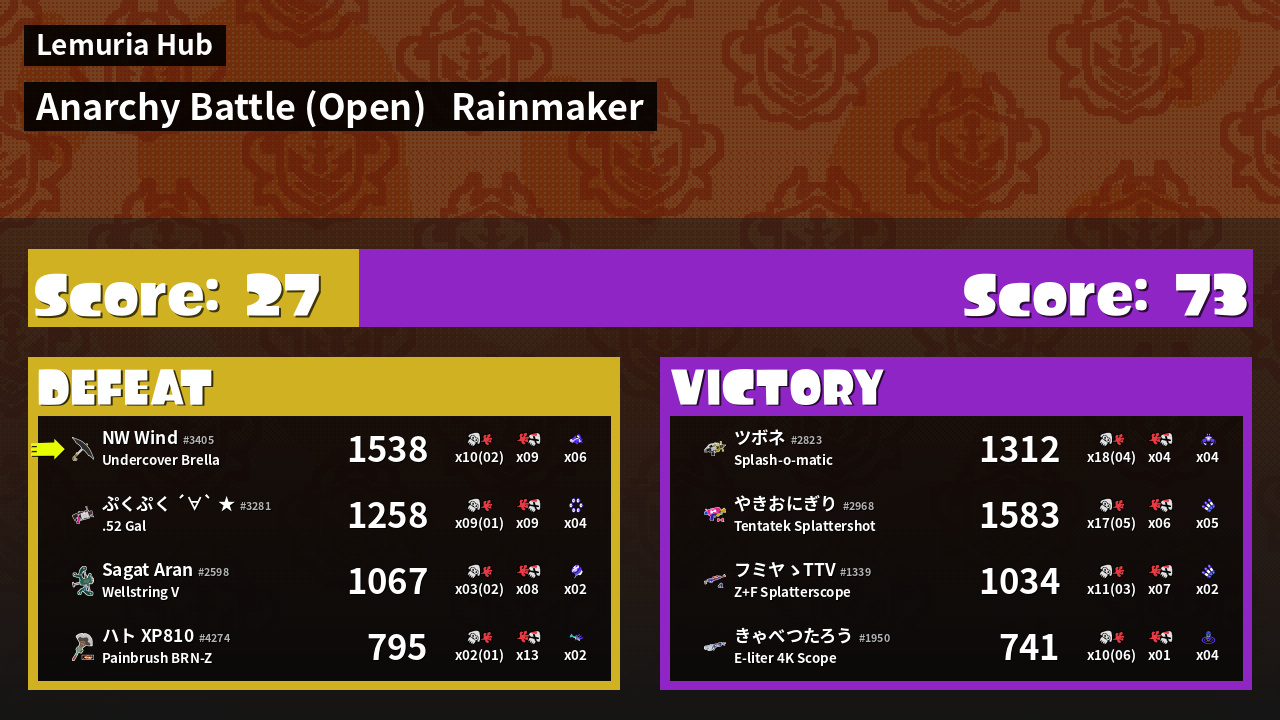 | Mode | Rainmaker - Anarchy Battle (Open) | ||