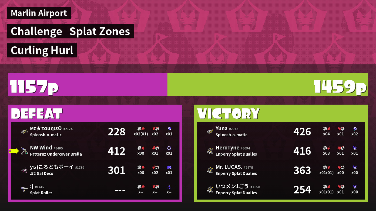| Weapon | Patternz Undercover Brella ( Curling Bomb / Killer Wail 5.1) | ||