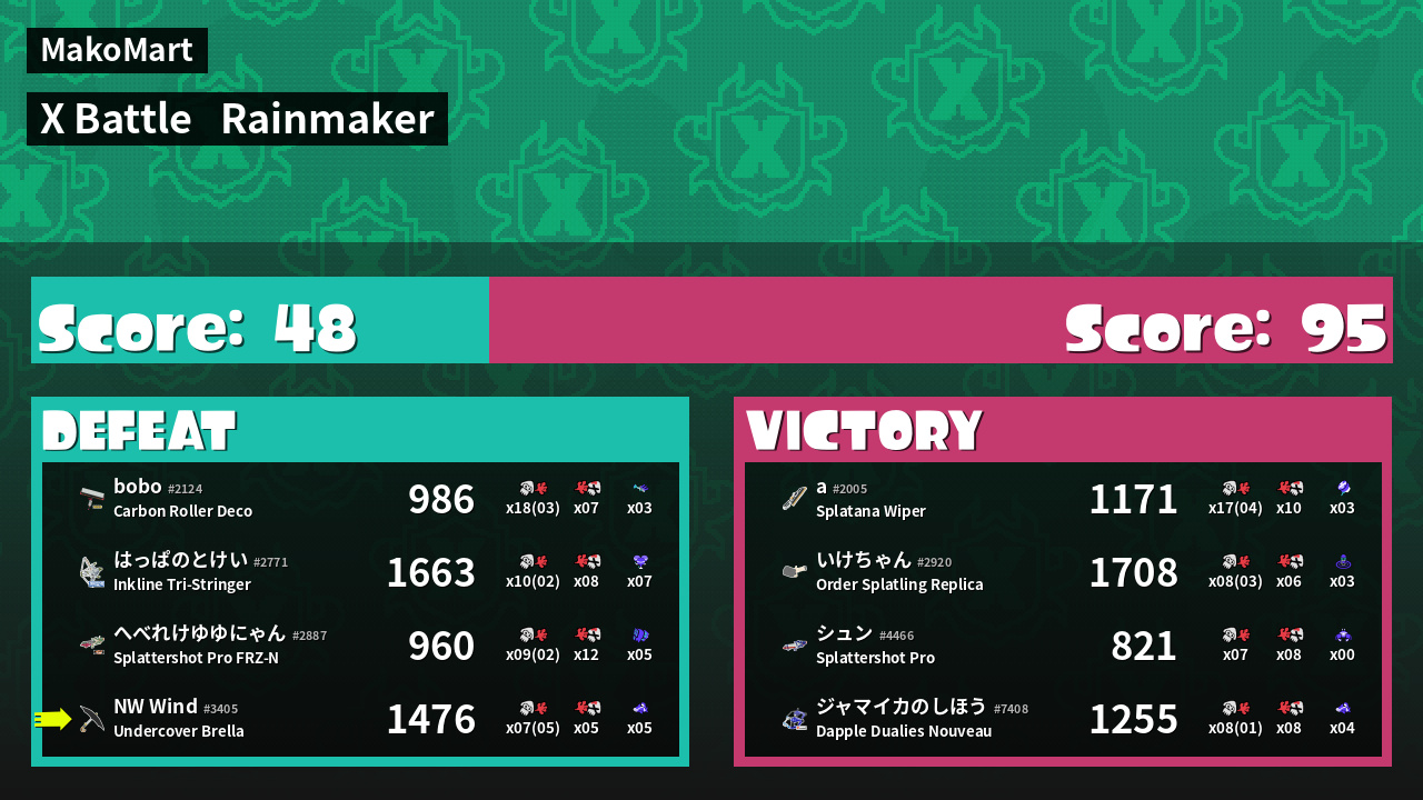 | Medals | #1 Splat Assister #1 Rainmaker Carrier #1 Damage Taker | ||