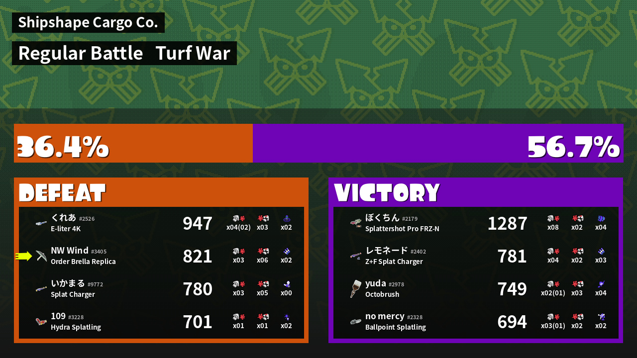 | Medals | #1 Popular Target #1 Enemy-Base Inker #1 Enemy Splatter | ||