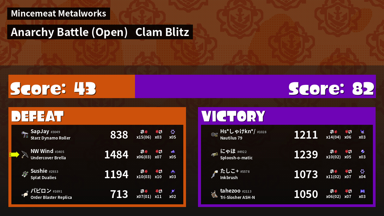| Mode | Clam Blitz - Anarchy Battle (Open) | ||