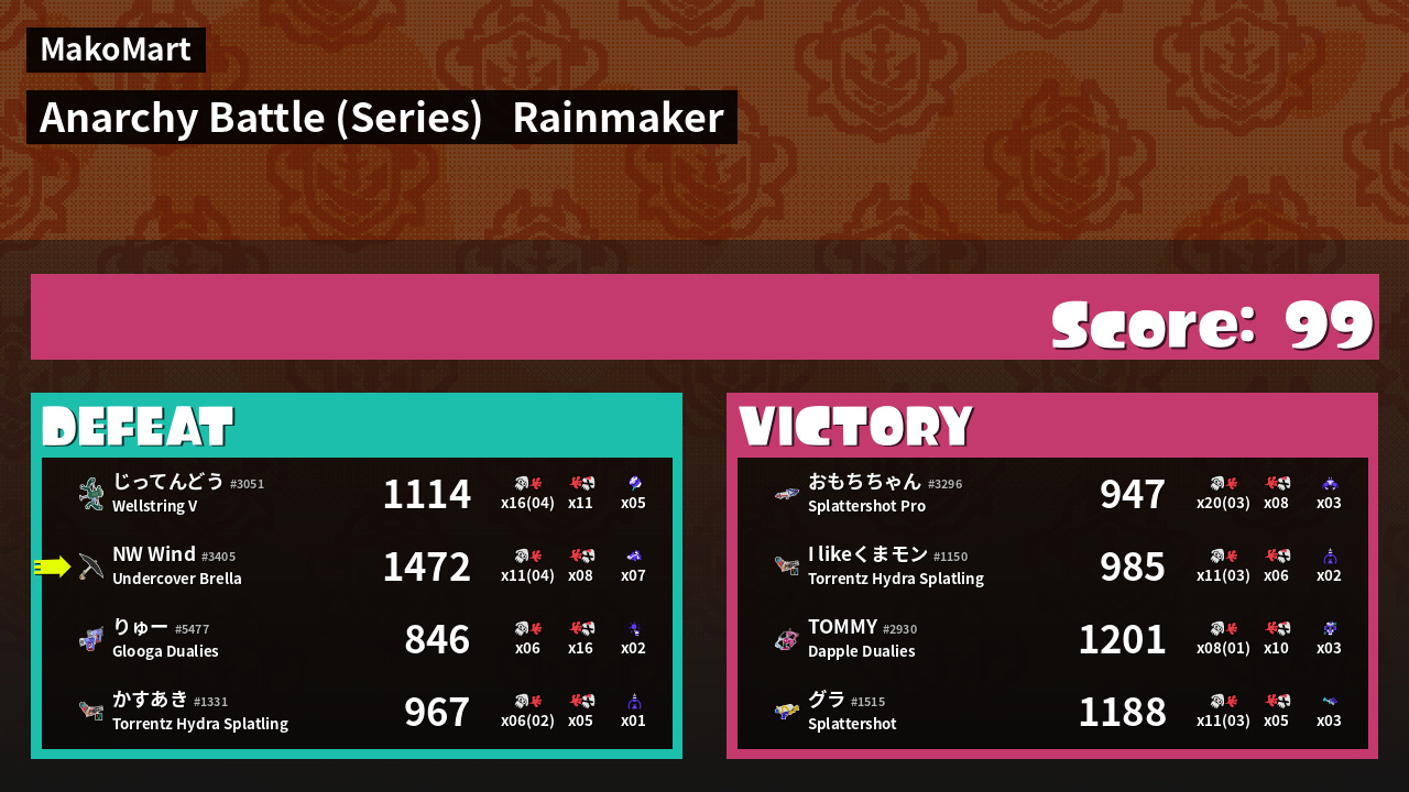 | Mode | Rainmaker - Anarchy Battle (Series) | ||