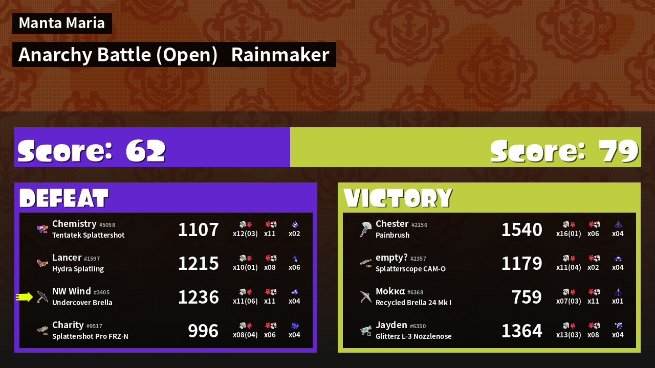 | Mode | Rainmaker - Anarchy Battle (Open) | ||
