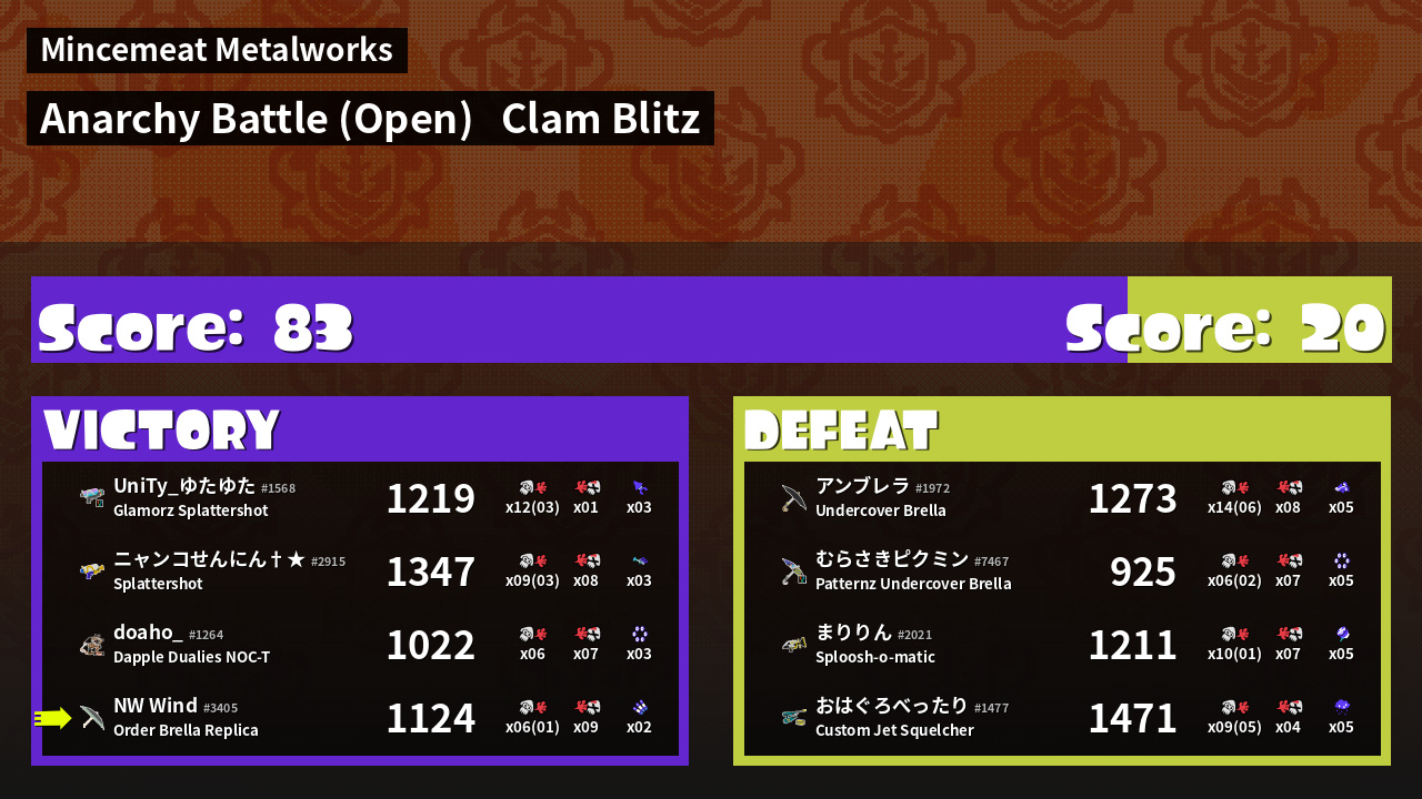 | Mode | Clam Blitz - Anarchy Battle (Open) | ||