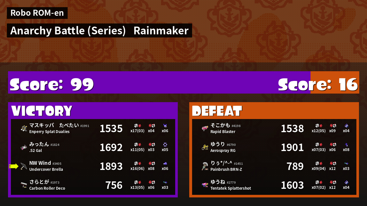 | Mode | Rainmaker - Anarchy Battle (Series) | ||