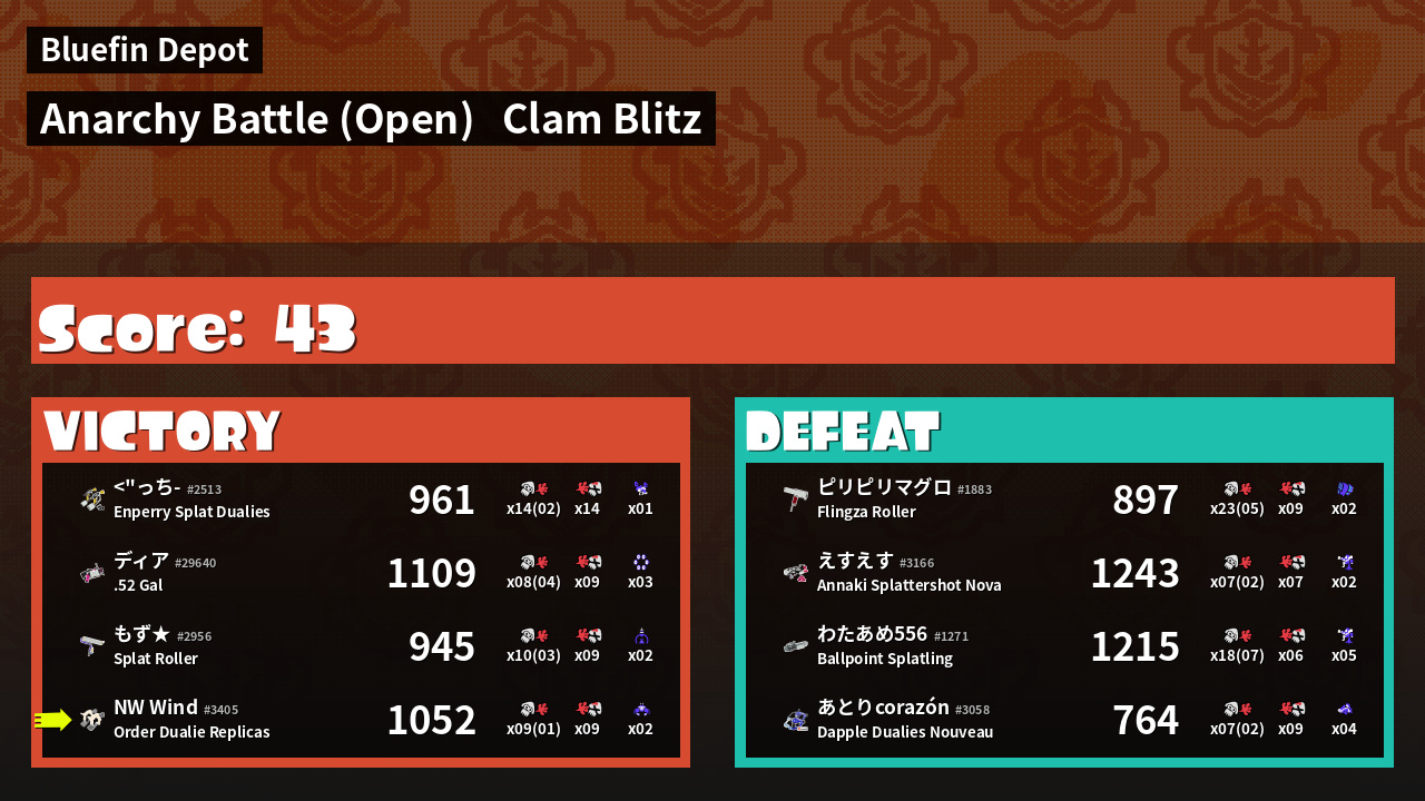 | Mode | Clam Blitz - Anarchy Battle (Open) | ||