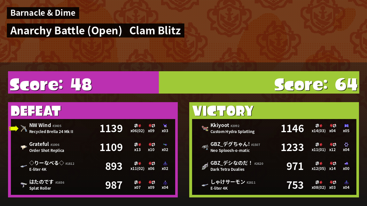 | Mode | Clam Blitz - Anarchy Battle (Open) | ||