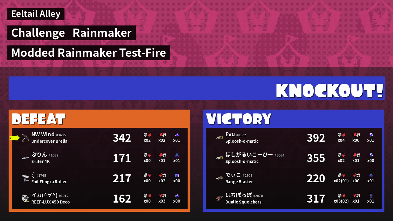 | Medals | #1 Overall Splatter #1 Turf Inker #1 Popular Target | ||