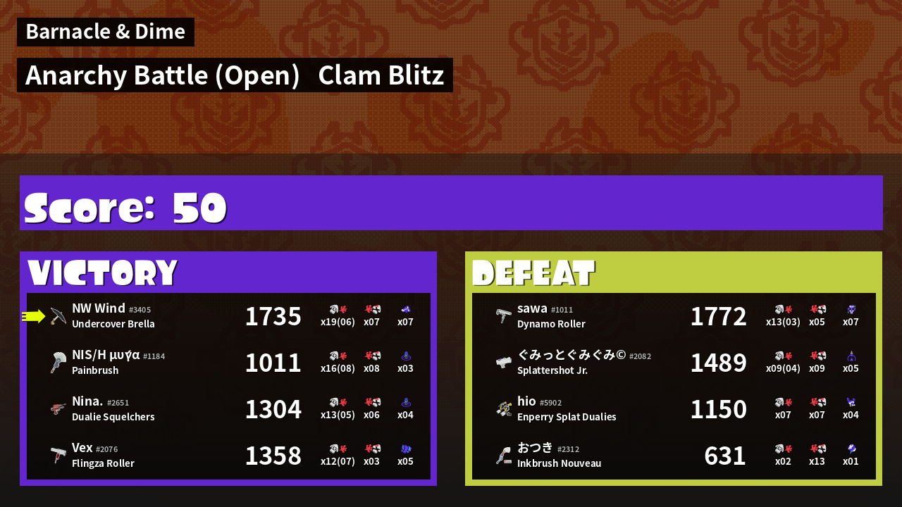 | Mode | Clam Blitz - Anarchy Battle (Open) | ||