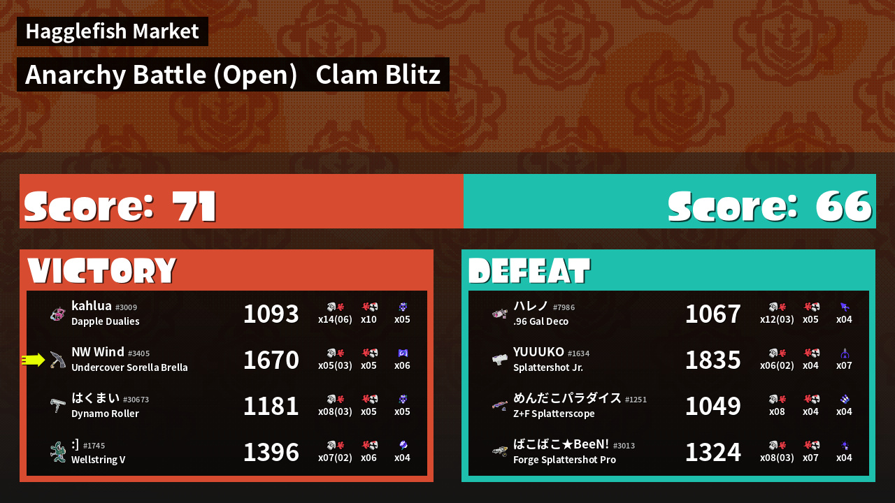 | Mode | Clam Blitz - Anarchy Battle (Open) | ||